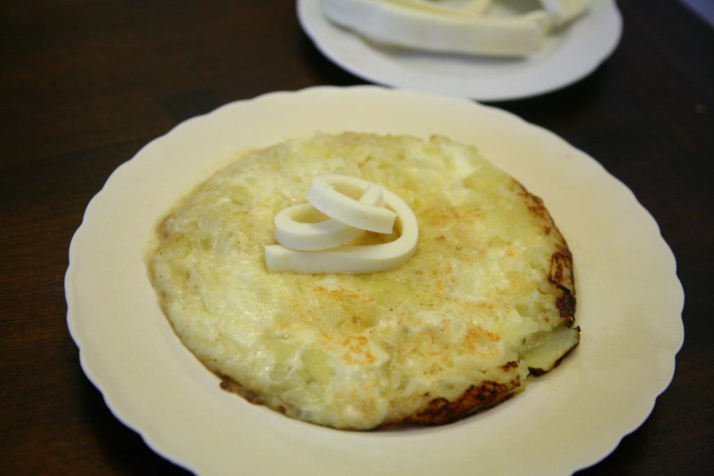 La prima è fatta con formaggio Montasio di diverse stagionature. Si utilizza una padella calda, unta con olio o lardo, si grattugia il Montasio fino a raggiungere uno strato di circa 10 centimetri e una volta schiacciato con una paletta si fa rosolare da una parte e dall’altra in modo da farlo diventare bello dorato e biscottato.