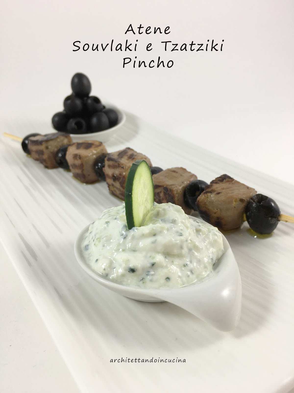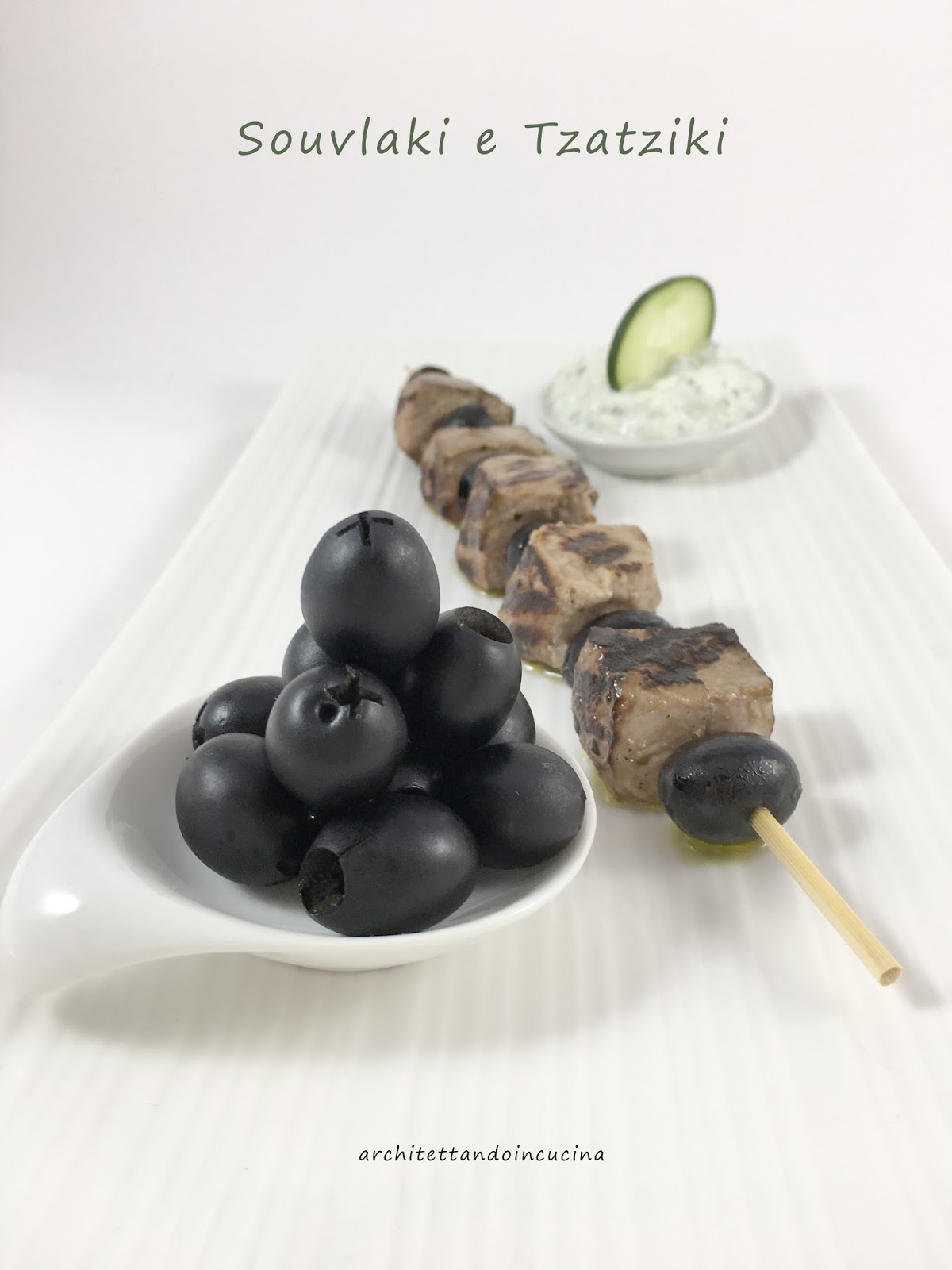 Souvlaki e Tzatziki, li ho accompagnati da una manciata di olive Kalamata che sulle tavole degli ateniesi, non mancano mai.