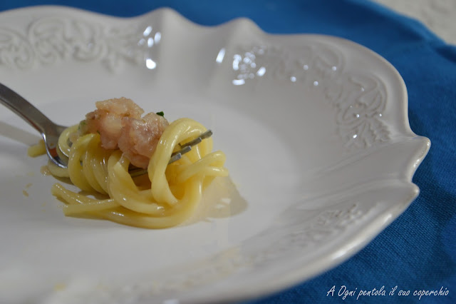 Mettete un una pentola dal fondo abbastanza largo l’acqua dei limoni senza le scorze, appena inizia a bollire unite un pizzico di sale e gli spaghetti, lasciate cuocere gli spaghetti nell’acqua di limone, solo se necessario aggiungete un mescolo di acqua calda (non dovrebbe servire). Alla fine la pasta si cuocerà nell’acqua di limoni assorbendo tutto il liquido.