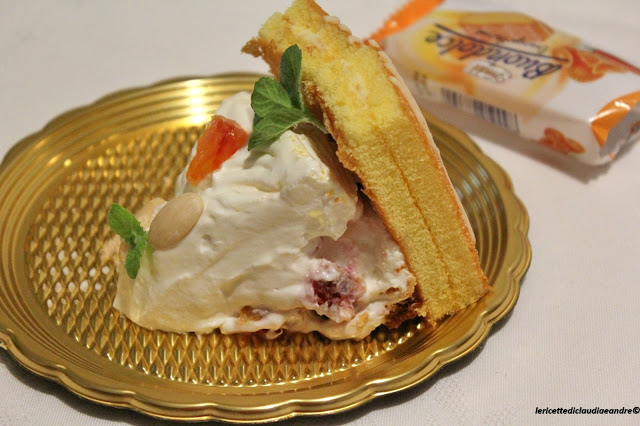 - Coprire il fondo con una fetta di colomba di avanzo, nel mio caso, o con una di Pan di Spagna.