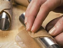 Spianare l’impasto ad uno spessore sottile (potete usare una sfogliatrice finendo con uno spessore simile a quello delle tagliatelle) spolverando, man mano, con la farina sia il piano di lavoro che l’impasto. Quando avrete raggiunto lo spessore desiderato, ricavate dei dischetti dal diametro di circa 10 cm. (potete aiutarvi con un coppapasta). Avvolgere i dischetti nelle cannelle unte d’olio, congiungendo i bordi spennellandoli con l’albume battuto. Friggere in abbondante olio ben caldo, due-tre per volta. Non appena la pasta sarà di un bel dorato scuro scolare e mettere a raffreddare su carta assorbente da cucina.