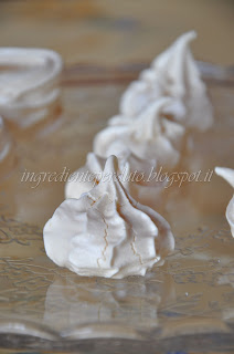 Quando penso alle meringhe mi vengono in mente quegli spumini deliziosi, dentro il sacchettino trasparente, e se ti andava bene ce ne era anche qualcuna colorata o che era caduta nella cioccolata.