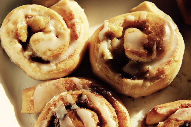 Nella versione originale il ripieno consiste solo in zucchero bruno e cannella, mentre io ho deciso di arrichirlo con delle mele e del cioccolato.