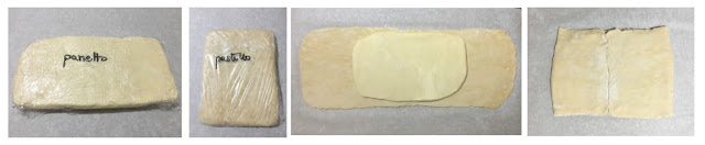 Riprendere il panetto di pasta, posizionarlo con la chiusura a destra, sigillare sopra e sotto, stendere con il matterello fino allo spessore di 1 cm e fare la piega a 4. Rimettere in frigo per 30/40 minuti, avvolto nella pellicola.