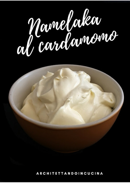Il giorno portare quasi ad ebollizione il latte con i semi di cardamomo, dopo aver rotto le bacche ed estratto i semi. Far raffreddare e riposare in frigo per tutta la notte. Il giorno seguente, portare a bollore il latte con il glucosio, aggiungere la colla di pesce ammorbidita per 5 minuti in acqua ghiacciata, strizzata e fatta sciogliere completamente.