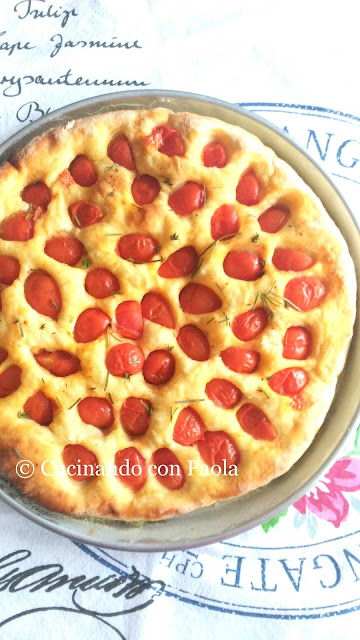 Affondate i pomodorini tagliati nell’impasto, cospargete la superficie con un pizzico di origano e una presa di sale. Lasciate lievitare le focacce coperte per un’altra ora e conditele con 200 ml di acqua e 3 cucchiai di olio. Cuocete in forno a 220°C per circa 30 minuti.