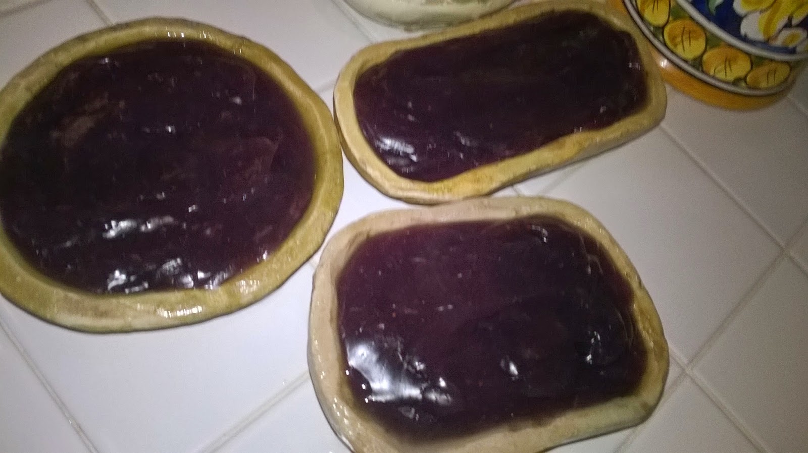 Ogni periodo dell’anno ha le sue specialità culinarie, specialmente se ciò che prepariamo ha come ingrediente principale qualcosa di rintracciabile solo in una determinata stagione; nella Sicilia orientale sta cominciando il periodo della vendemmia per poi cedere il posto a quello della raccolta delle olive. Tipico dolce realizzato con il mosto d’uva è quello che vi vado a raccontare oggi: si chiama “mustata” o “mustarda” a seconda delle zone; è un dolce a lunga conservazione nel senso che si conserva per tutto l’inverno e non necessita di frigorifero. Al tempo dei miei nonni le formelle di mostarda dura venivano regalate ai bambini nella festività dei “morticini” insieme alle melagrane o a qualche forma di cotognata. Quello che vedete nella foto è il mosto appena ricavato dalla spremitura dell’uva; potete prepararlo in casa facilmente con un estrattore oppure si va a prenderlo nei palmenti! Va sottoposto però ad una serie di operazioni che lo stabilizzeranno e ne esalteranno la dolcezza all’ennesima potenza! Innanzi tutto si mette in una pentola e gli si fa raggiungere l’ebollizione per bloccare la fermentazione degli zuccheri.