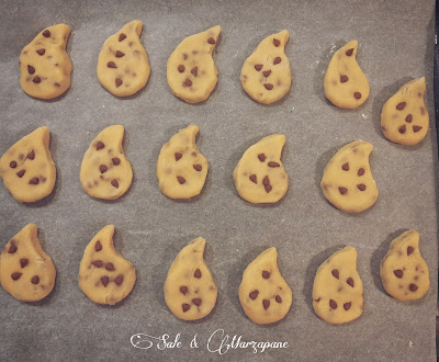 Ricavate dall’impasto delle palline di circa 9 grammi e date la forma di gocciola. Adagiate i biscotti, un pò distanziati perchè aumenteranno di volume in cottura, su una teglia rivestita da carta forno.
