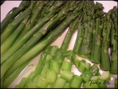 Lessate gli asparagi per una decina di minuti, in abbondante acqua salata, regolatevi in base alla dimensione degli asparagi, quelli che ho utilizzato erano di dimensione media.