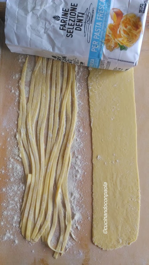 Ora passiamo le sfoglie nel rullo per le fettuccine.
