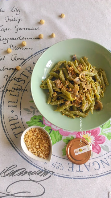 il Pesto di nocciole Redonda e i funghi champignon precedentemente cotti.