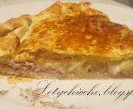 Torta salata di sfoglia con patate, prosciutto cotto e mozzarella
