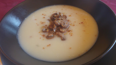 Vellutata di Sedano Rapa, funghi rosolati e briciole di pane alla cipolla