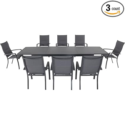 Naples 9 Piece Outdoor Dining Set With 8 Padded Sling Chairs In Gray And A 40 X 118 Expandable Dining Table
