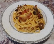 SPAGHETTI CREMA DI PARMIGIANO SPECK E FIORI DI ZUCCA