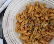 Pasta in particolare nel formato Gnocchetti sardi conditi con una purea di cannelli con salsiccia sgranata insaporita con timo, aglio in polvere, semi di finocchio e sfumata con il vino bianco. Semplice e buona. Ingredienti: 380 g di gnocchetti sardi 200 g di fagioli cannellini cotti 3 salsicce di maiale 1 cucchiaio di concentrato di Continua a leggere..