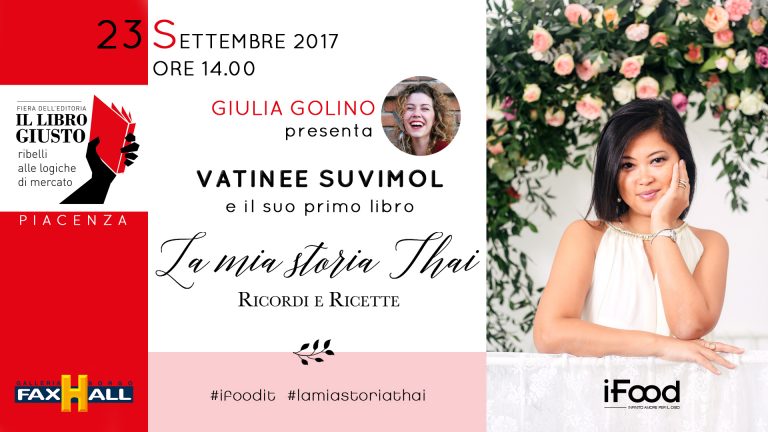 Sarà per me, oltre che un enorme piacere, un grandissimo onore chiacchierare sabato 23 settembre 2017 con la mia amica Vaty (Vatinee Suvimol), autrice di La mia Storia Thai, durante uno degli appuntamenti della fiera Il Libro Giusto che si svolgerà questo fine settimana a Borgo Faxhall (Piacenza, accanto alla stazione)