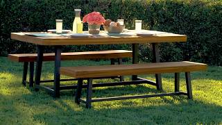 Gdf Studio Weir Outdoor Acacia Wood Picnic Set Teak Finish Black