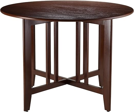 Winsome Wood Alamo Double Drop Leaf Round Table Mission Walnut 42 Inch