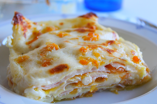 | Lasagne con Zucca, Besciamella, Prosciutto Cotto e Emmenthal |