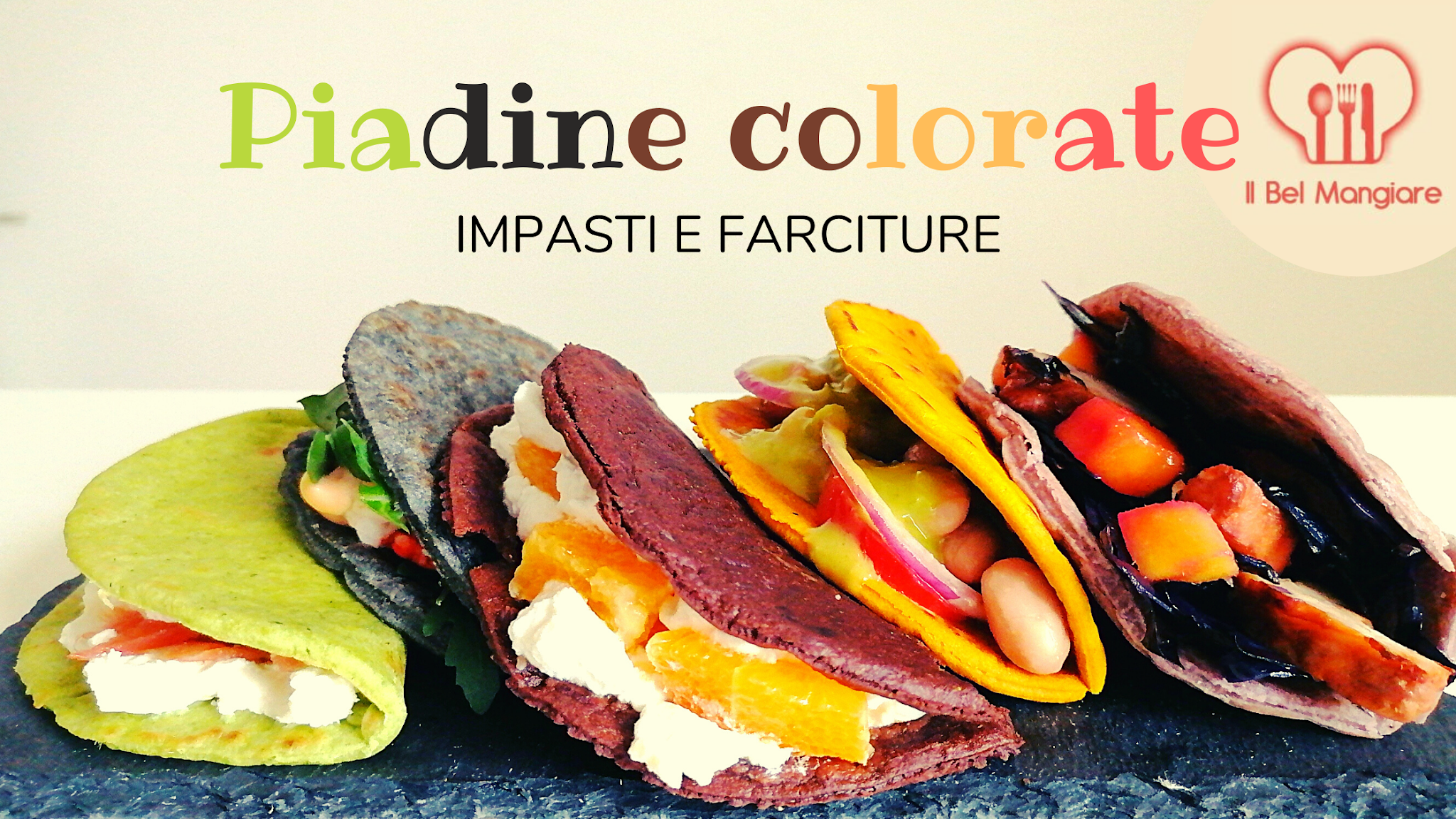 Ecco 5 mini piadine colorate con ingredienti naturali e farcite con ingredienti ad hoc che ne esaltano gusto e colore. Provare per credere!