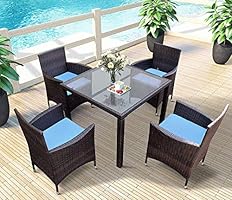 Lz Leisure Zone Outdoor 5 Pieces Patio Dining Set Garden Pe Rattan Dining Furniture Sets With 4 Wicker Chairs And Glass Table