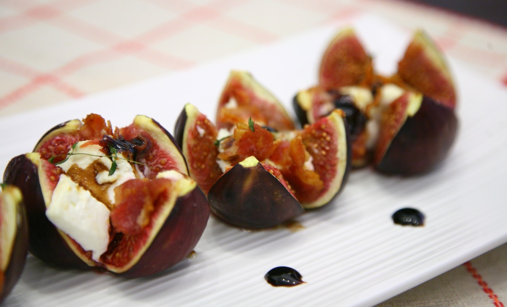 Gli accostamenti sembrano un po’ azzardati, ma il sapore della robiola di capra si sposa perfettamente con il gusto dolce del fico e la croccantezza del bacon dona al piatto una marcia in più.