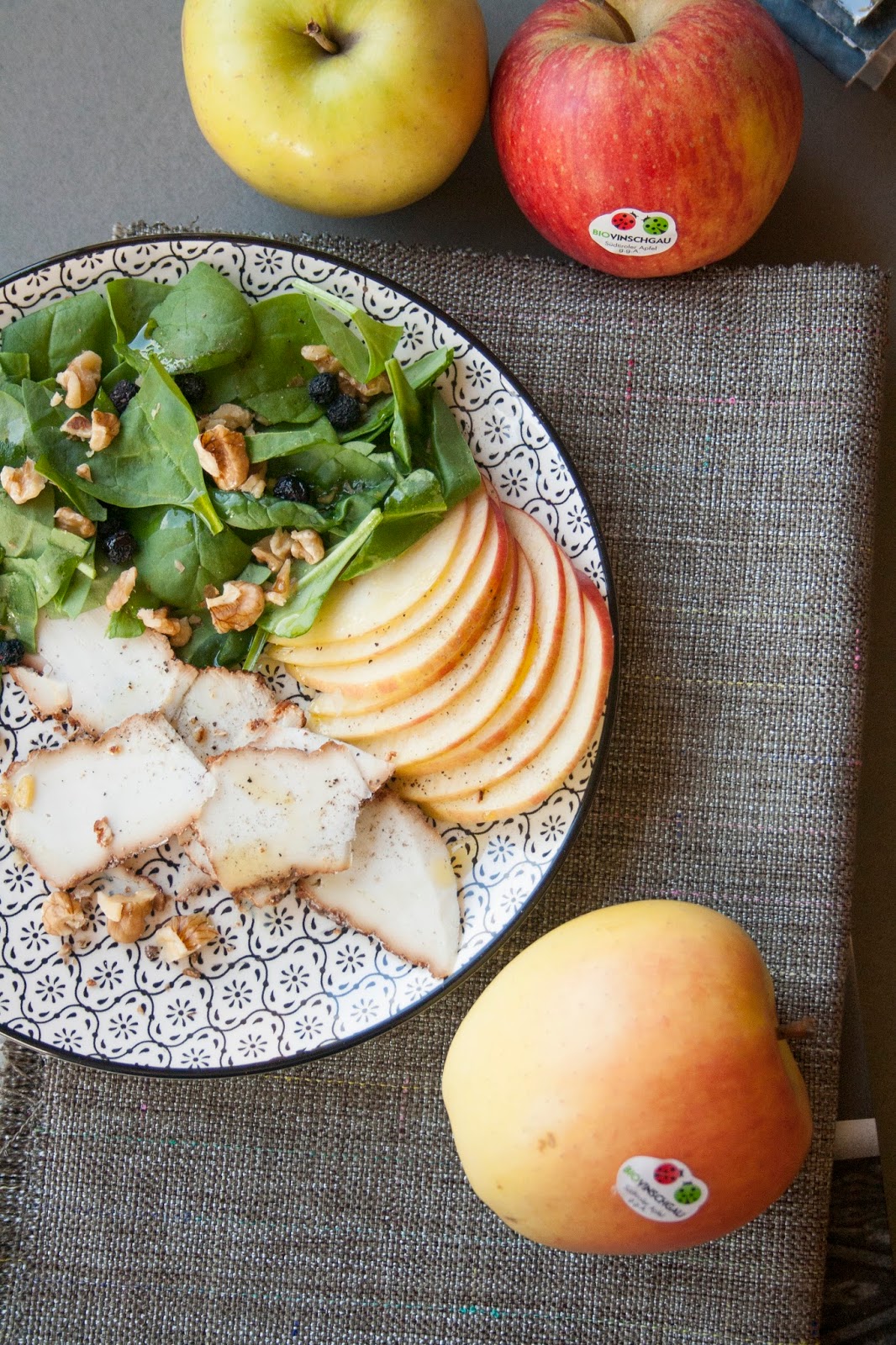 INSALATA DI SPINACINO, MELA VAL VENOSTA, RICOTTA AFFUMICATA E NOCI