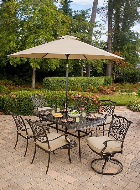 Hanover Traditions7pcsw Su Furniture 7 Piece Traditions Deep Cushioned Umbrella Outdoor Patio Dining Set Tan