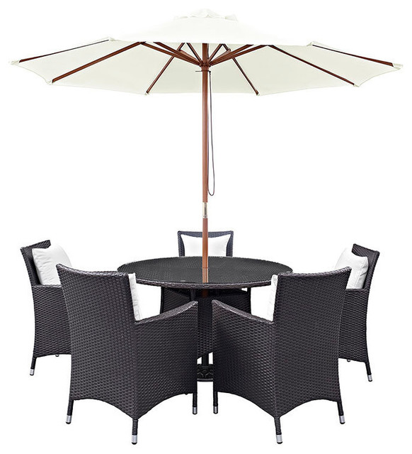 Hinsdale Patio 7 Piece Round Dining Set With Umbrella White