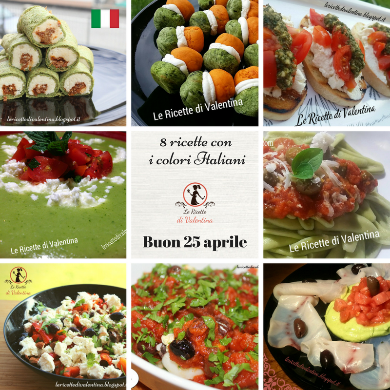8 ricette con i colori della nostra bandiera per celebrare il 25 aprile Creato da Le Ricette di Valentina VAI ALLA RICETTA Per celebrare questo giorno di festa tutto Italiano ho pensato di radunare dal mio archivio 8 ricette tutte tricolore come la nostra bandiera. Buon 25 aprile a tutti, anche a tavola! Rotolini di crepes alla menta ripiene di mandorle e pomodorini Baci di dama salati tricolore Crostini tricolore al profumo di menta Crema di zucchine e menta con feta e pomodorini (ricetta Bimby) Sugo alle olive tagiasche con basilico e origano freschi Insalata tiepida di peperoni, feta e olive Seppie a vapore ripiene di hummus di soia gialla e olive (ricetta bimby) Carpaccio di pesce spada con crema di avocado, olive taggiasche e tartare di cuore di bue Altre ricette simili a questa:VIDEO RICETTA: Baci di dama preparati con friggitrice ad ariaLA TRECCIA VEGETARIANACandy Cane CookiesPAN BRIOCHE SALATO POMODORI E OLIVE SUPER SOFFICECuore di Cioccolato all'AranciaImpara a fare i ravioli cinesi con le ricette e i corsi di Madame Zheng Tags: basilico, Bimby, Carpaccio, colori, giorno, olive, ricette, tavola