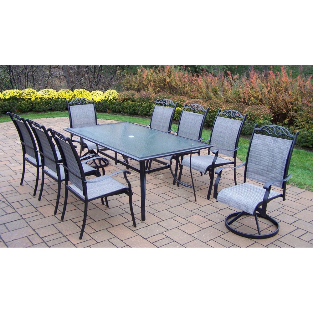 Oakland Living Cascade 9 Piece Sling Dining Set With 72 By 42 Inch Table In Black