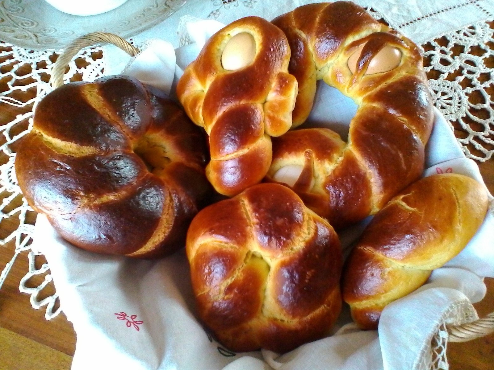 Secondo la tradizione le uova utilizzate per la decorazione dovrebbero essere quelle deposte dalle galline ( certamente per chi ha un pollaio ) nei giorni 24/25 marzo, data del concepimento di Gesù. E sempre tra il sacro e il profano, in epoca magnogreca questo pane dolce dalla forma circolare veniva preparato per celebrare la primavera e la rinascita. E l’uovo è proprio il simbolo della nascita e della resurrezione. Ma, poichè durante il periodo quaresimale era vietato consumare cibi di origine animale, l’uovo veniva incastonato sulla cuzzupa e mangiato alla fine del digiuno, cioè la mattina di Pasqua. E sempre parlando di tradizioni si racconta che la preparazione delle cuzzupe non poteva avvenire il Venerdì Santo per il divieto di mangiare carni e di manipolare alimenti di origine animale come la sugna. E infatti era il Giovedì Santo che le impastavamo con mia mamma, anche sei poi si infornavano il Sabato Santo se… le temperature erano basse, se…era stato messo troppo zucchero, se…