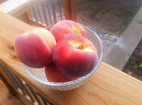 There are so many great peach recipes but one simple dish that my wife makes that I love is her sliced peaches. She takes nice ripe yellow peaches and slices them into a bowl, sprinkles them with sugar and then shreds cheddar cheese over them. Simply scrumptious. We have a favorite room in the house that gets the morning sun where we will sit with coffee and sometimes eat breakfast. A perfect ambiance for enjoying this seasonal fare.