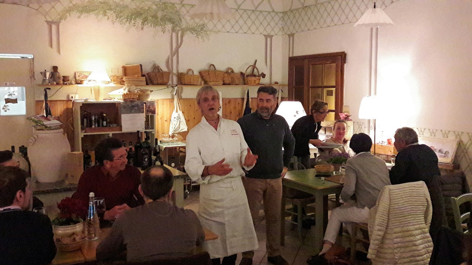 Frazionando (eh eh..) la sinottica che collega la punta della lingua alla punta della coda passando come per una serie di volute di alambicchi ho gustato e ascoltato la sua lectio magistralis (eh..il classico riaffiora come la muffa…) su Carpaccio di lingua, Poppa e Trippa fritte, sformatino di cavolo nero e lampredotto, Minestra di centopelli, Raviolo di lampredotto, Trippa alla fiorentina (non vi azzardate a metterci il parmigiano del tutto fuori della tradizione e anche dalla geologistica) e stracotto di lampredotto. In debita assonanza Quartini di sangioveto grosso o prugnolo gentile a profusione.