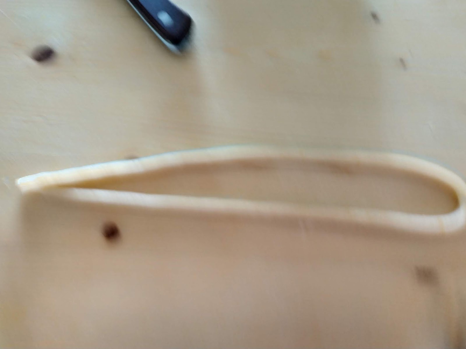 Stendete l’impasto con un mattarello e ricavatene tante striscioline; arrotolatele quindi come se fosse un cordoncino.