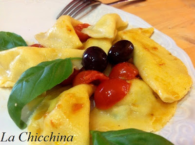 Ogni tanto cedo alla tentazione e preparo la pasta fresca ripiena: il mio polso birichino non mi permetterebbe di tirare la sfoglia, ma vuoi mettere la soddisfazione?! Poi a mio marito piacciono tanto e farlo felice, per me, non ha prezzo: quindi stringo i denti, mi rimbocco le maniche e, in men che non si dica, questo primo delizioso è pronto.