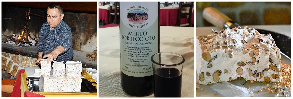 Come fine pasto, insieme a un bicchierino di mirto della casa non mancate di addentare l’ottimo torrone sempre di produzione della casa (potrete acquistare in loco entrambi i prodotti), con miele e mandorle, secondo l’antica ricetta di Tonara, in sala è visibile anche il vecchio paiolo in cui si produceva manualmente e che viene ancora usato in occasione di fiere e sagre.