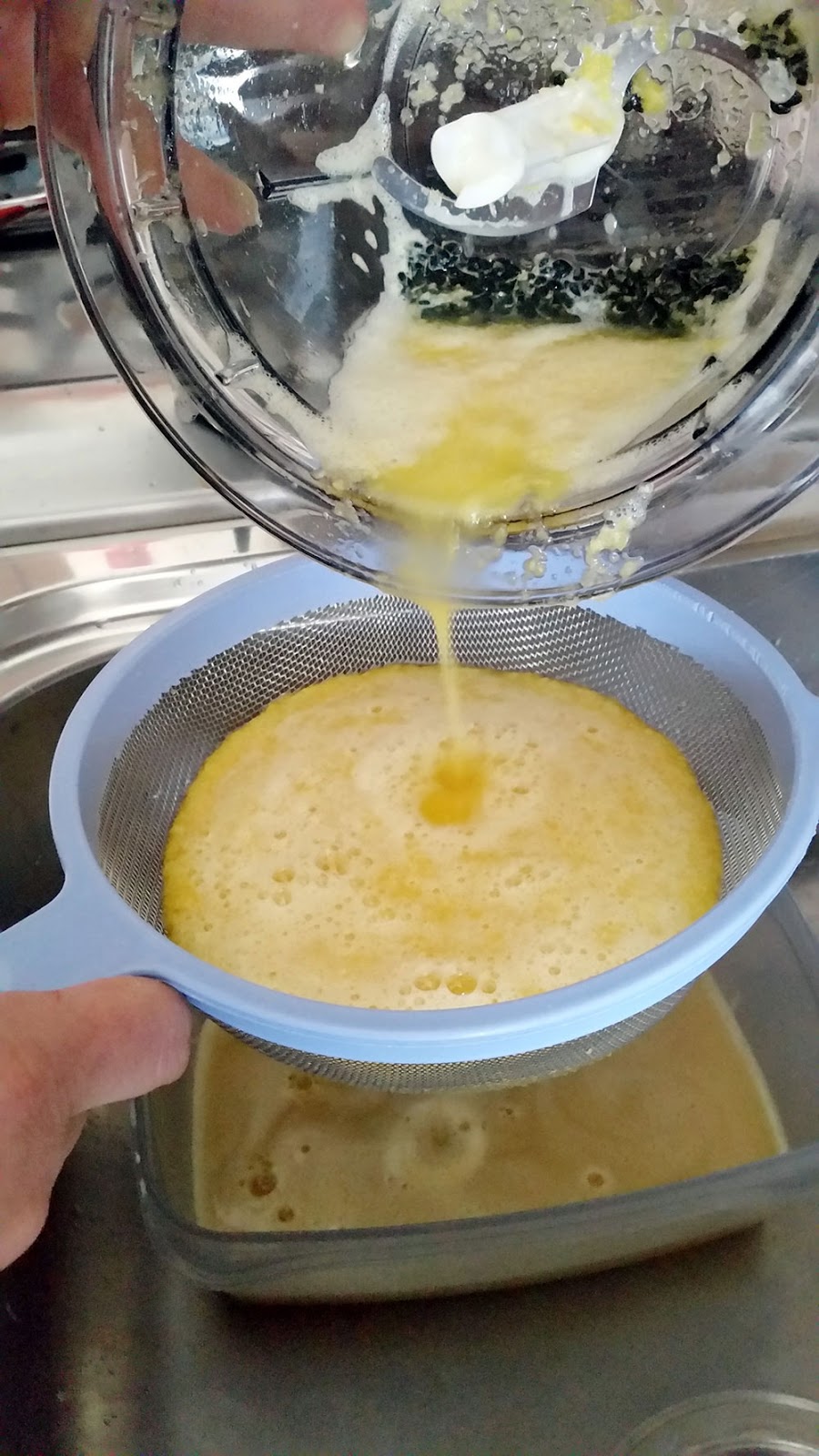 Filtrate il succo ottenuto attraverso un colino. I semi delle maracuja sono grossi, duri e possono risultare indigesti. Alcune persone li mangiano tranquillamente: voi fate come meglio credete…