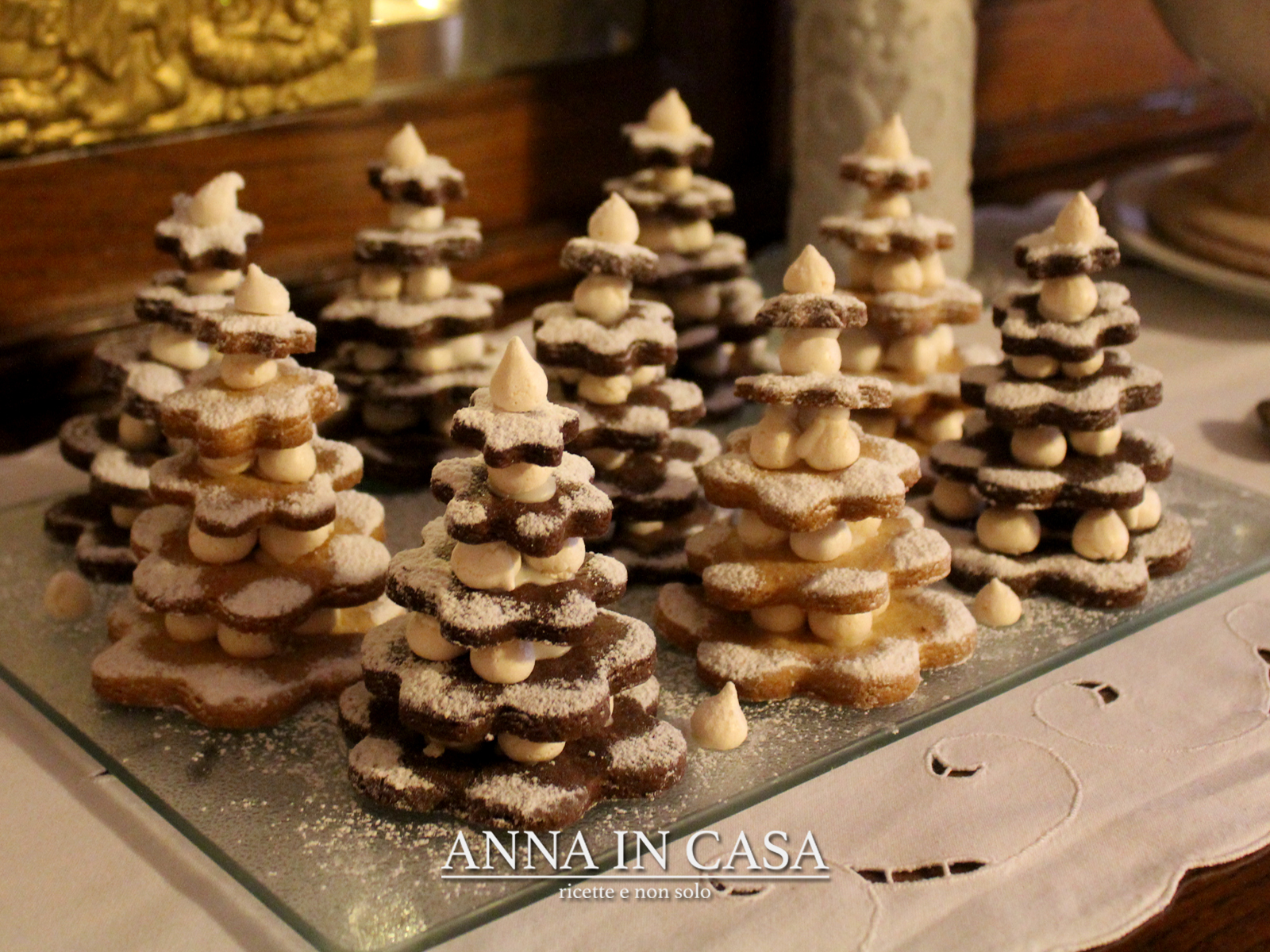 Quest’anno invece della casetta di pan di zenzero ho preparato gli alberelli di pasta frolla e meringhette.