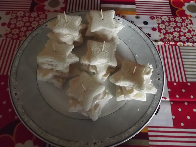 Basta una confezione di pane per tramezzini, una formina a stellina, del formaggio spalmabile, del prosciutto cotto e uno stuzzicadenti e il gioco e’ fatto.