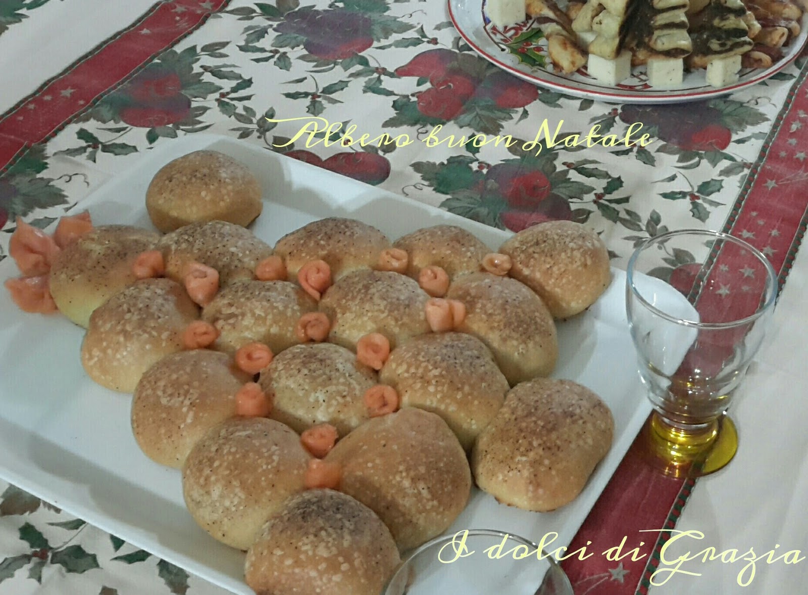 Per questo Natale, trascorso in famiglia, ho preparato qualche stuzzichino sfizioso. Tra idee prese dal web e vecchie e collaudate ricette è venuto fuori questo albero di Natale realizzato con la pasta lievitata.