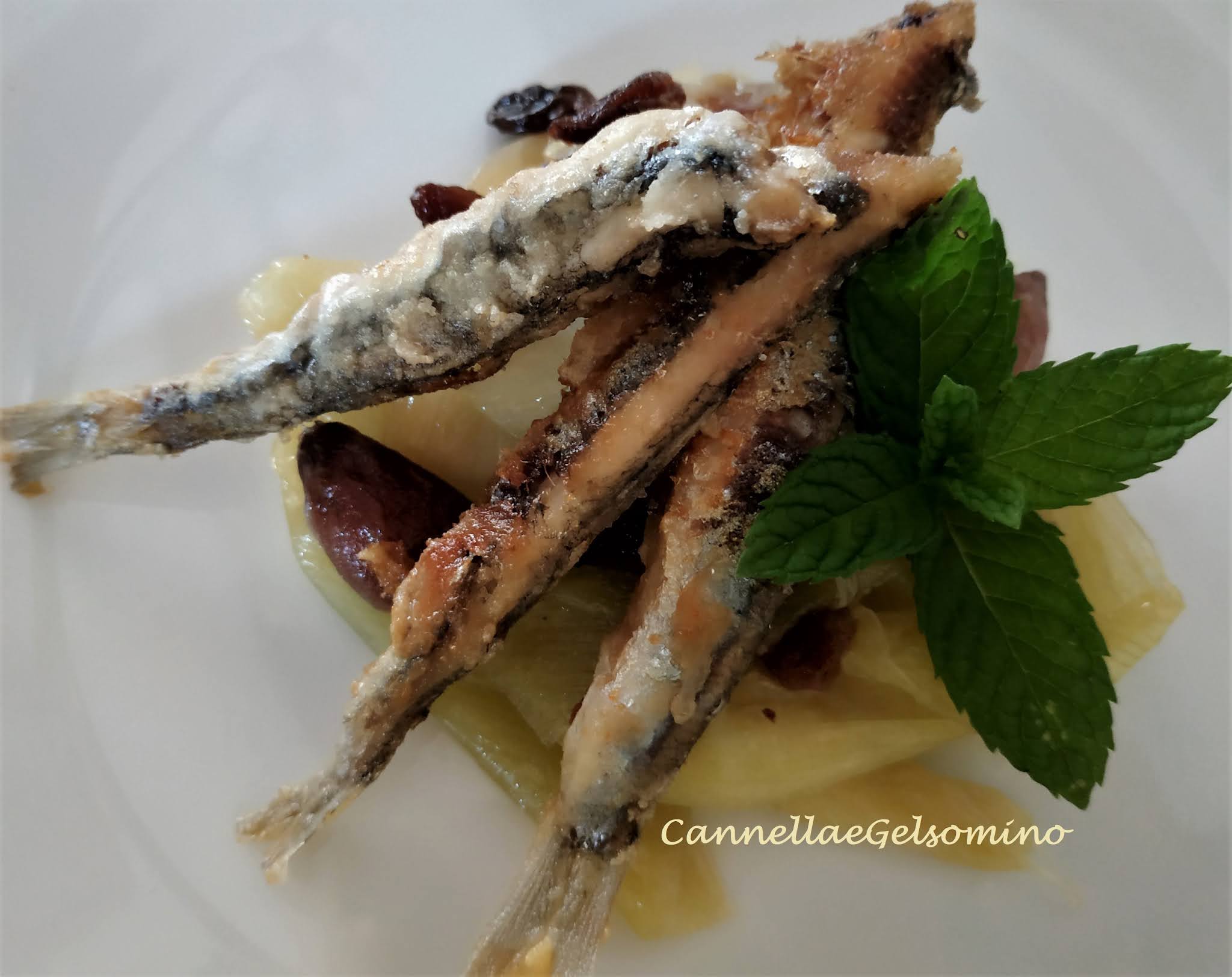 Sono convinta che si può preparare un piatto ricco di gusto con pochi e semplici ingredienti, tanto meglio se sono anche a basso costo! Vi propongo un modo di presentare le alici, pesce definito povero, non so perchè: fritte, croccanti, profumatissime, accompagnate con dei cipollotti in agrodolce (marchio tutto siciliano).