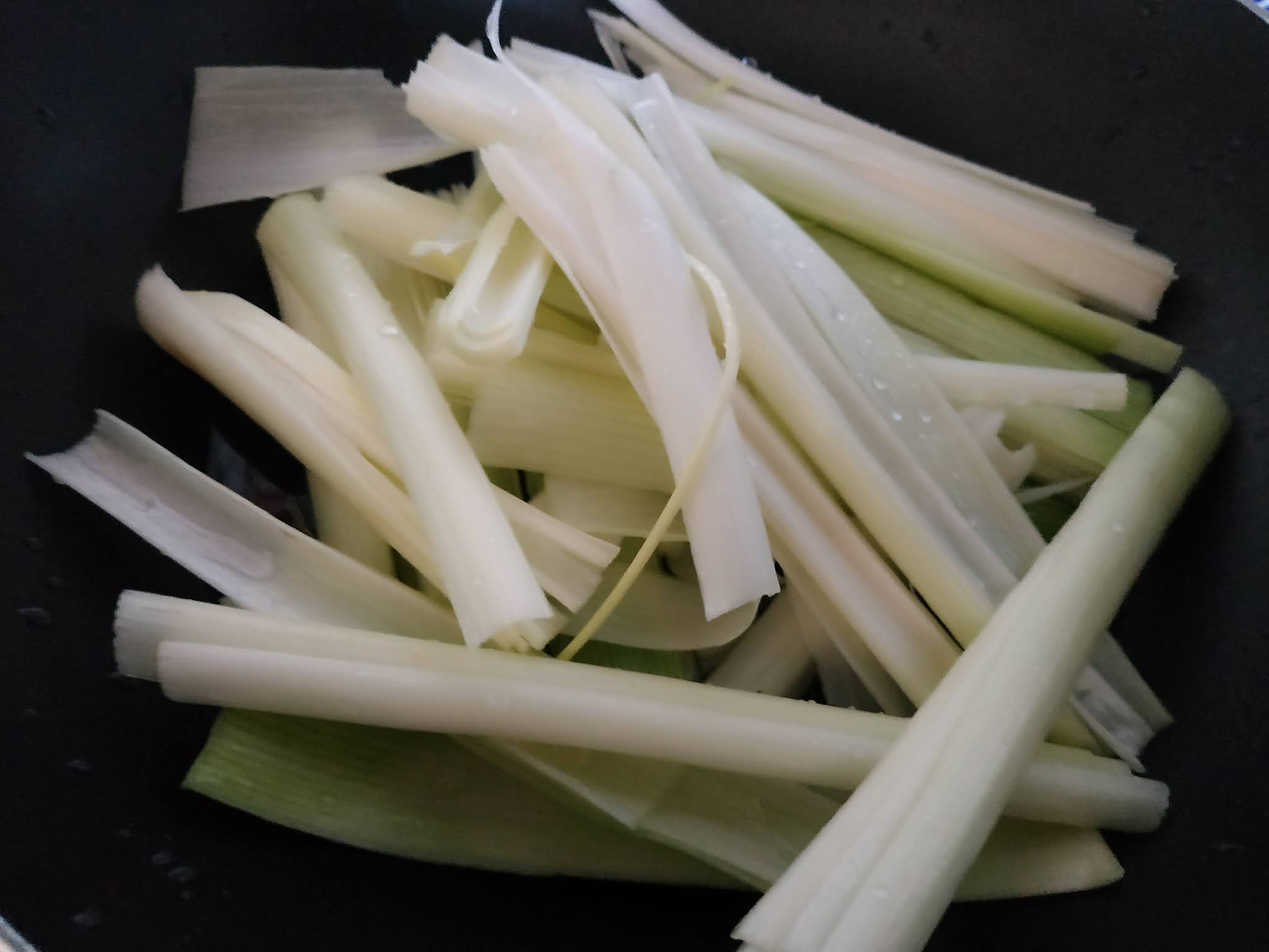 Tagliate i cipollotti a listarelle e metteteli in una padella con olio extra vergine d’oliva.