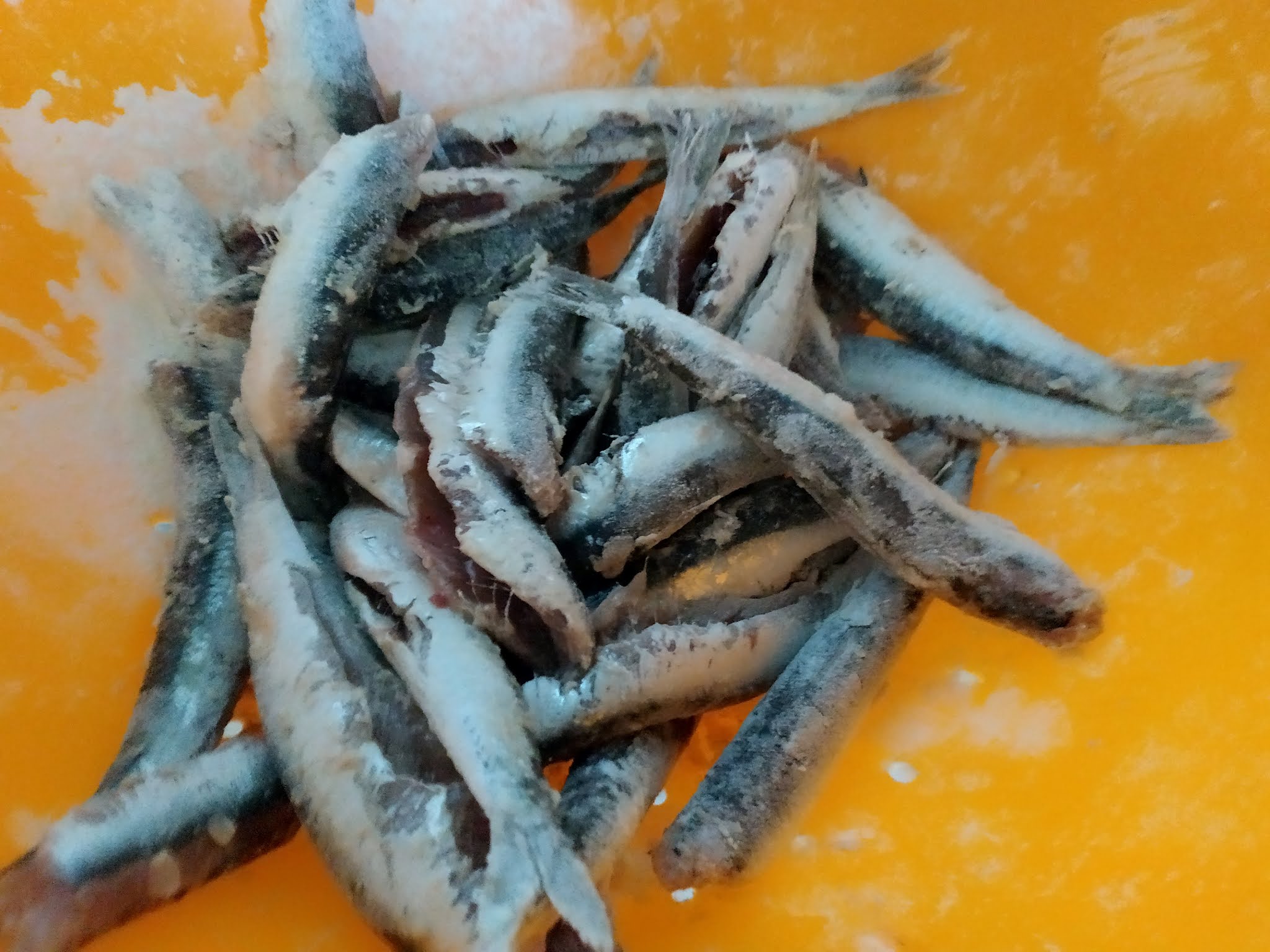 Lavate e asciugate le alici, quindi passatele velocemente nella semola.