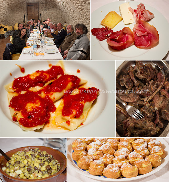 Dopo l’evento “vi presento lo zafferano”, siamo rimasti nel Convento di S. Antonio di Civitarevenga dove abbiamo consumato la cena con piatti a base di zafferano preparati da Dina Paoletti, socia della “Cooperativa Altopiano di Navelli” e titolare dell’agriturismo Casa Verde dove si può degustare la cucina tipica locale con prodotti dell’azienda.