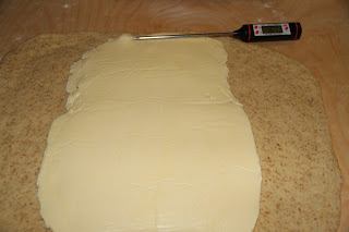 Stendere l’impasto freddo a 1 cm nella misura del doppio del burro.