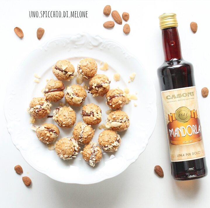 Gli amaretti farciti con una buona cioccolata spalmabile, bagnati con un liquore spettacolare alla mandorla e ricoperti di scaglie (sempre alla mandorla) rendono questi dolcetti un dessert speciale ed originale.