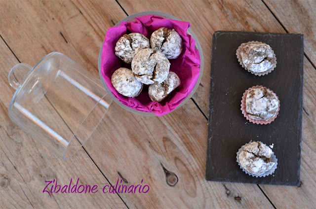 Formare con l’impasto delle palline grandi come noci, rotolarle in zucchero a velo e disporle sulla teglia foderata di carta forno.