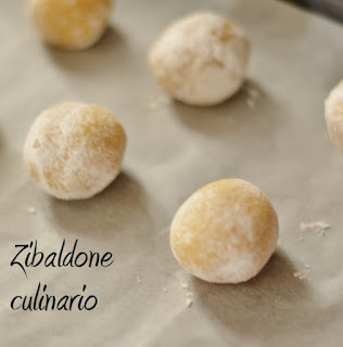 Ottenuto l’impasto omogeneo, dare la forma di salsicciotto e rotolarlo nello zucchero a velo, affettare poi e con ogni pezzetto (circa 20g), modellare delle palline.